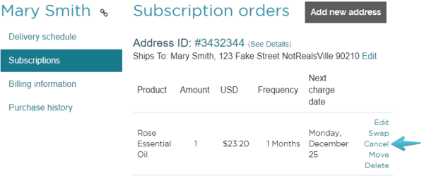 In order to cancel your subscription, you will first need to log in to your account. Click the Subscriptions tab, then next to each of the products you are subscribed to is a Cancel button. You would use this if you would like to no longer receive this subscription product.