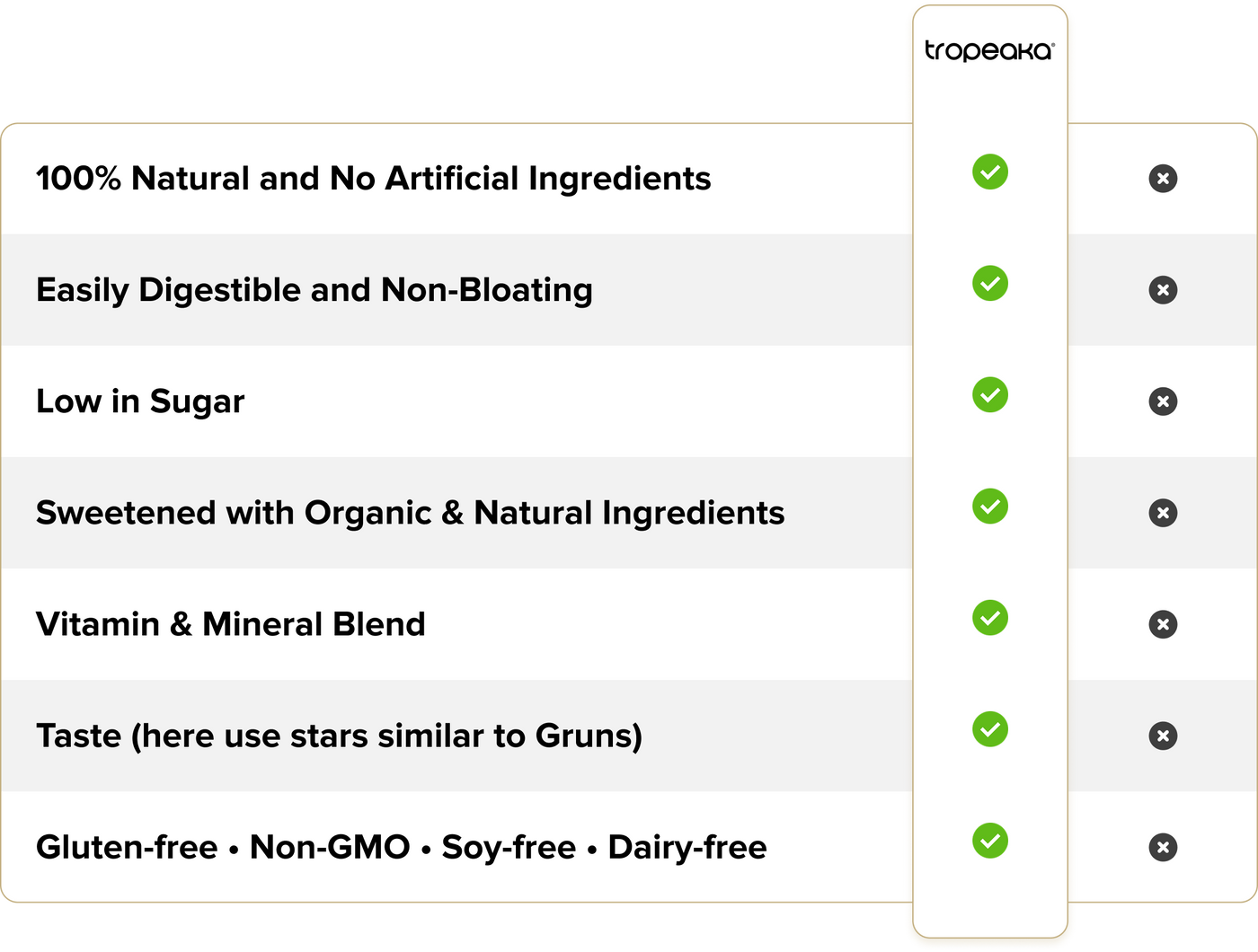 “Tropeaka keeps you fuller for longer, it is much gentler on the digestive tract while switching from meals to shakes and tastes better.”
